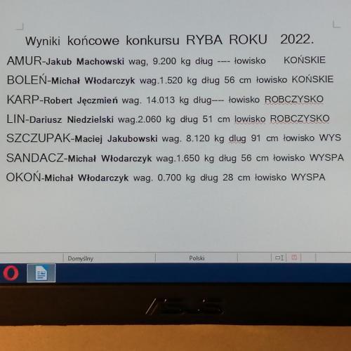 11.01.2023r. Wyniki końcowe konkursu RYBA ROKU 2022.