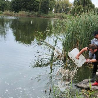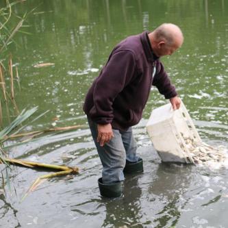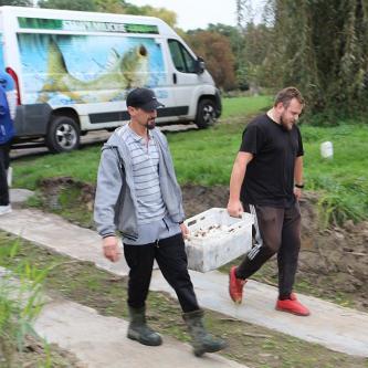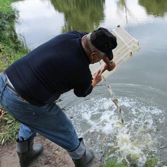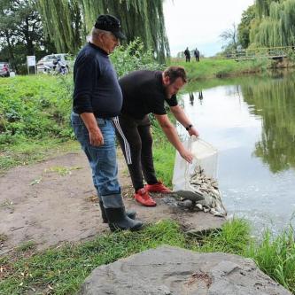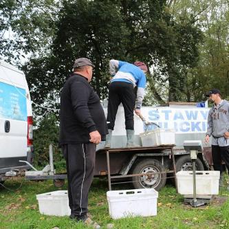 5.10.2020 r. Zarybianie łowisk POŚREDNIK, KOŃSKIE i WYSPA narybkiem karasia.